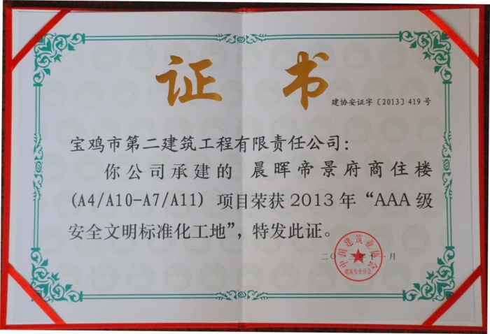 2013年度國(guó)家級(jí)“AAA級(jí)安全文明標(biāo)準(zhǔn)化工地”