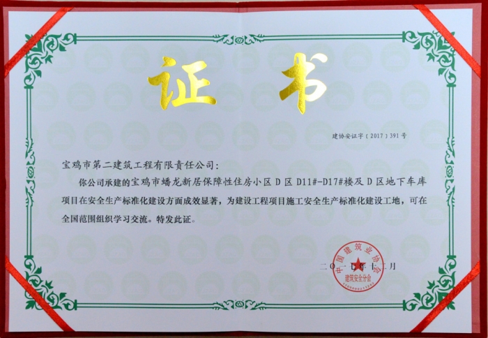 全國安全生產(chǎn)標準化建設工地(寶雞市盤龍新居保障性住房小區(qū))