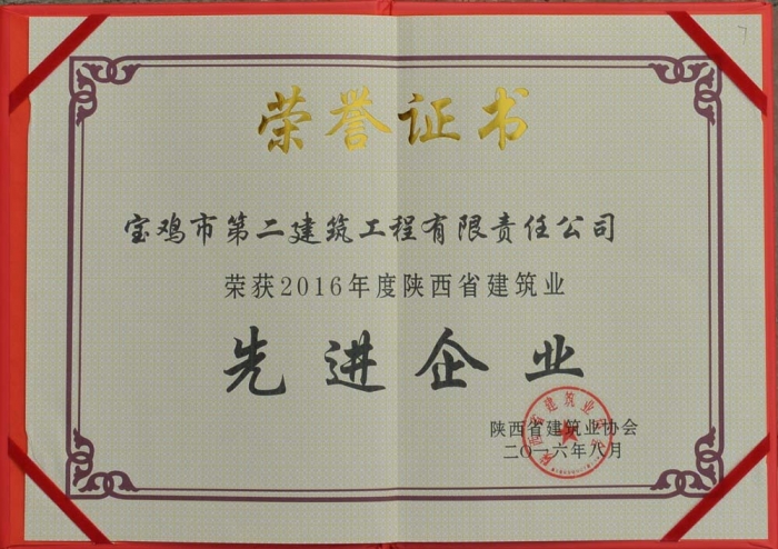 2016年建筑業(yè)先進(jìn)企業(yè)